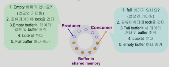 - wait(empty) : empty buffer가 생길 때까지 기다리기