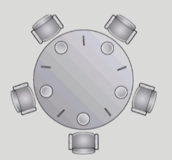 철학자 5명이 원형 식탁에 앉아서 밥을 먹으려고 한다
