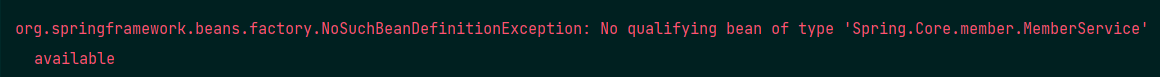 등록된 MemberService를 가져오려고 했으나 MemberService가 빈으로 등록이 되지 않아서 오류가 발생하였다
