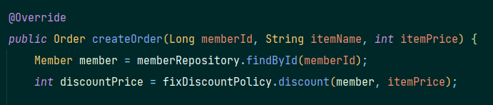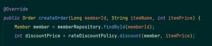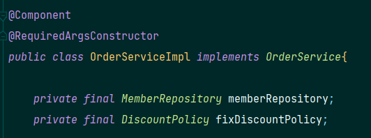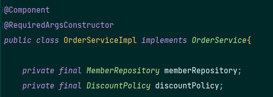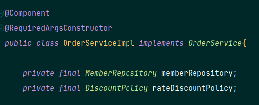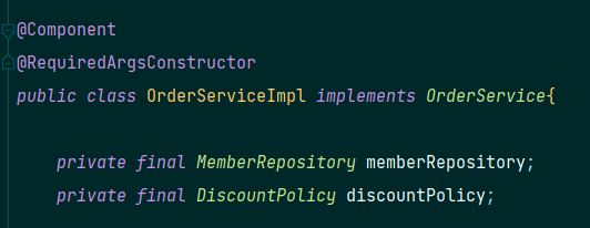 public OrderServiceImpl(MemberRepository memberRepository, DiscountPolicy discountPolicy){