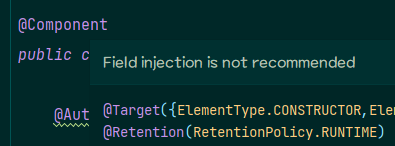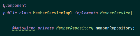 필드 주입은 그냥 필드에 @Autowired를 붙이면 되는 굉장히 간단한 DI방식이다. 하지만 이 방식을 IDE상에서도 권장하지 않고 되도록이면 쓰지 않는 것이 좋다
