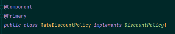 둘 중에서 RateDiscountPolicy한테 우선순위를 부여하게 된다면 DiscountPolicy 타입으로 조회할 때 RateDiscountPolicy로 지정이 된다