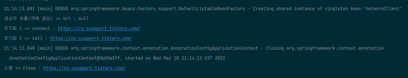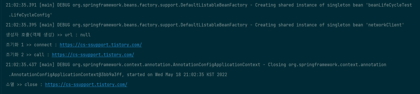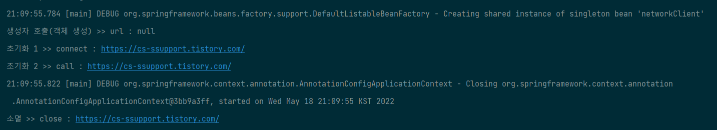 그리고 스프링 컨테이너를 종료하게 되면 여러 스프링 빈들에 대한 "소멸 콜백 메소드"를 호출해서 스프링 빈들도 소멸이 된다