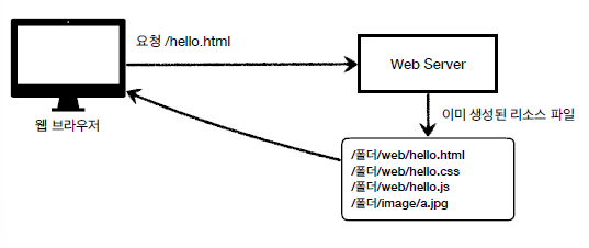 Client가 웹 서버에게 http request를 보내면 웹 서버는 "이미 보관하고 있는 정적 리소스"를 그대로 요청에 따라서 응답해준다
