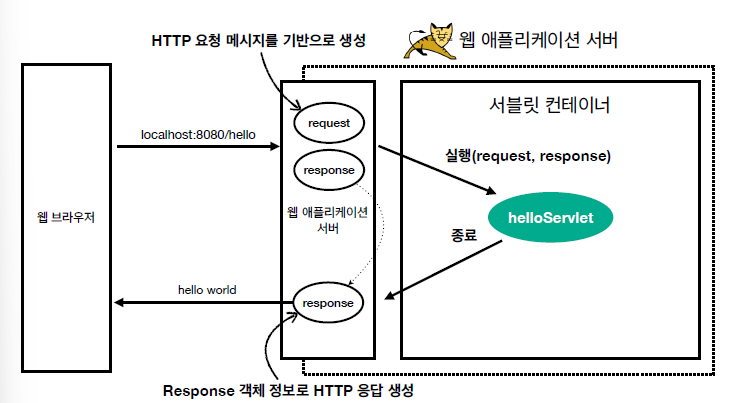 서블릿은 스프링과 비슷하게 "서블릿 컨테이너"가 존재한다