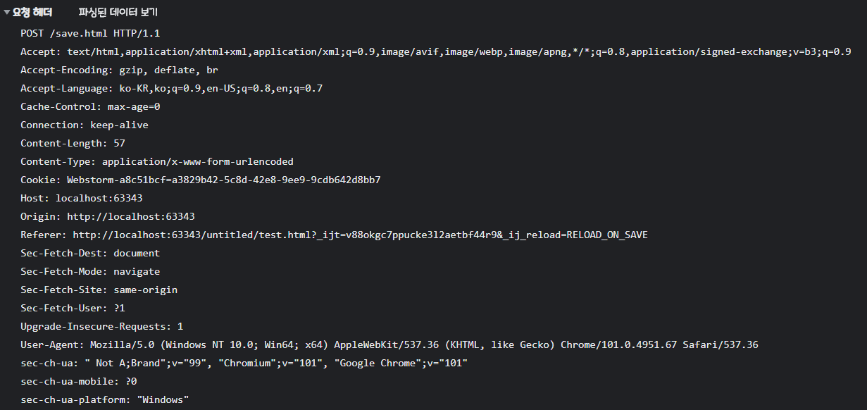 이런 Form이 있다고 가정하고 현재 form을 보면 action = "/save.html"이므로 /save.html인 url로 위의 정보들이 post방식으로 전송된다