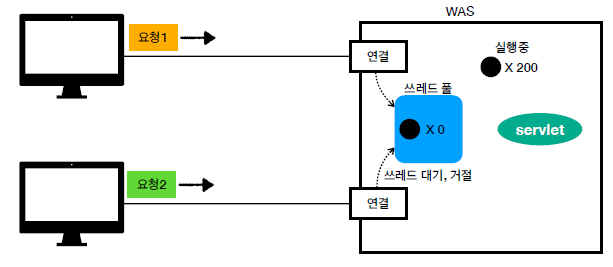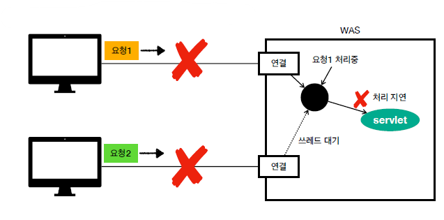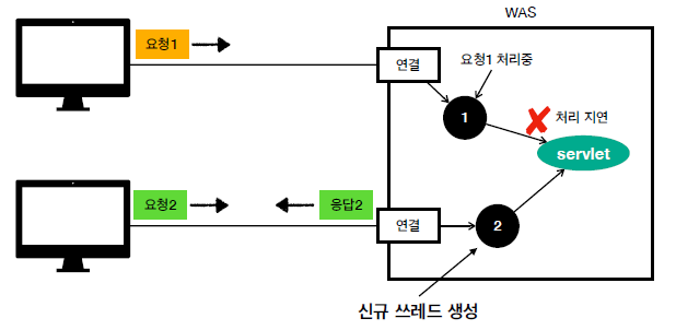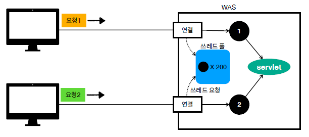 미리 WAS에 쓰레드를 여러개 "미리" 생성해놓는다