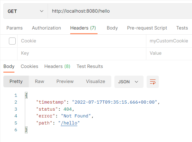 이 경우 헤더에 "Cookie=myCustomCookie"라는 key-value가 있어야 URL매핑이 정상적으로 이루어진다
