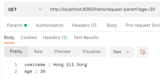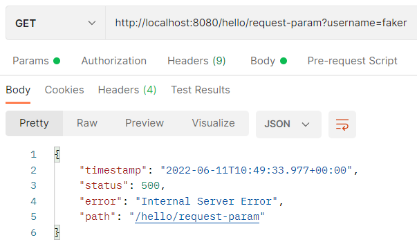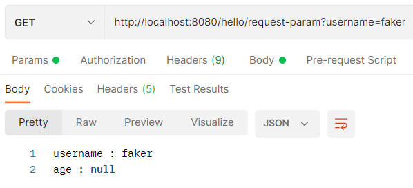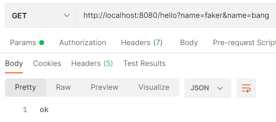 이렇게 쿼리 파라미터로 "name=faker"가 존재해야 정상적인 요청응답이 이루어진다