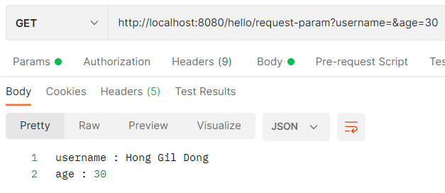 @RequestParam(defaultValue = "Hong Gil Dong") String username,