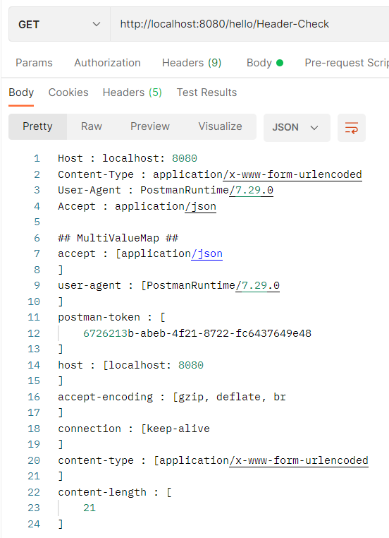 그리고 "MultiValueMap"을 이용하면 하나의 헤더에 대한 "여러 Value"를 Map을 통해서 얻을 수 있다