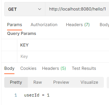 이 경우 URL : /hello/{userId}에서 실제로 /hello/1로 request를 할 경우 "userId = 1"이 된다