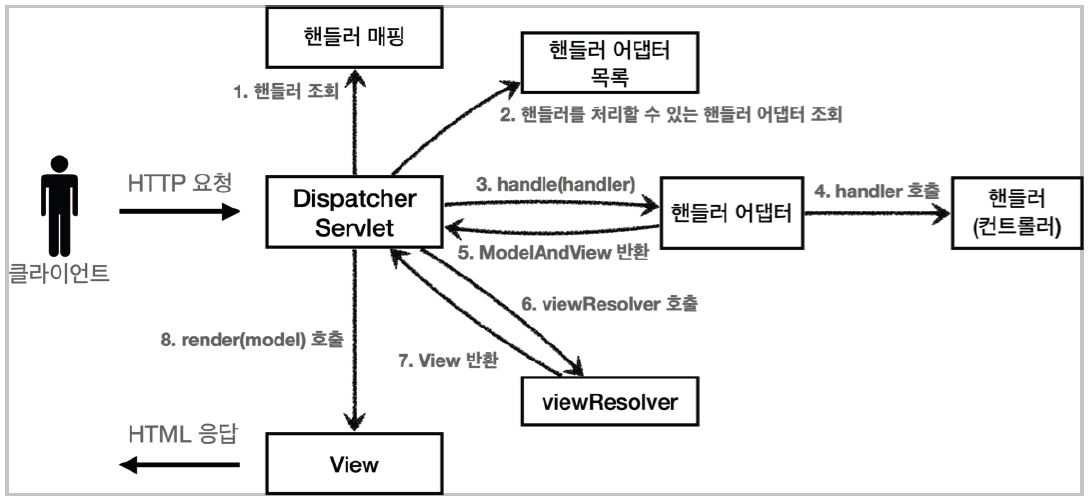 그러면 여기서 {핸들러 어댑터 - 핸들러}부분을 더 자세히 살펴보자