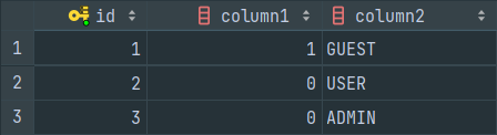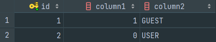 여기서 이전에 넣었던 값을 생각해보면 id = 1인 instance는 RoleType.GUEST, id = 2인 instance는 RoleType.USER로 insert하였다