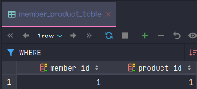 이렇게 두 엔티티간의 JoinTable(member_product_table)이 생성됨을 확인할 수 있다