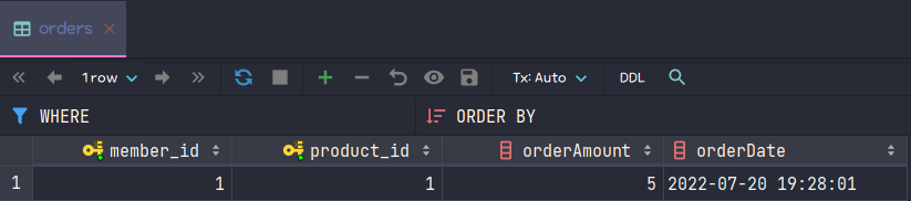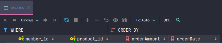 Orders Table의 복합키 설정이 완료된 것을 확인할 수 있다