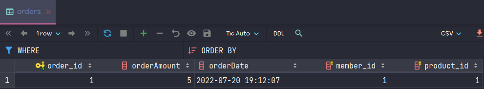 Order order = new Order(member, product, 5, LocalDateTime.now());
