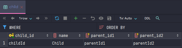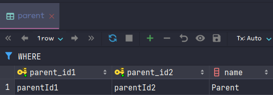 - 그러면 ParentId의 필드인 [String id1, String id2]가 PK로 설정이 된다
