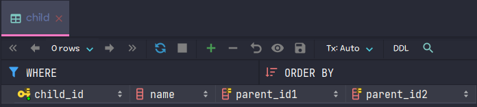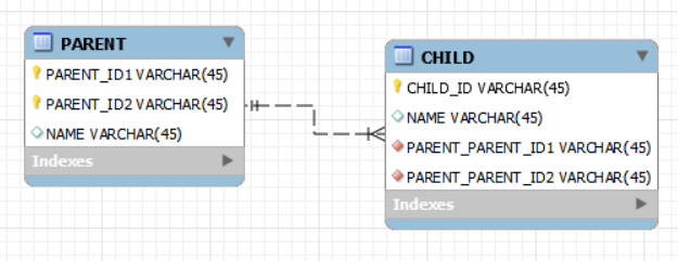 현재 PARENT Table은 PK가 "복합키"로 구성되어있는 상태이고 CHILD와 1:N 관계이다