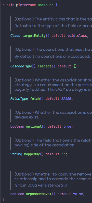 여기서 @JoinColumn에서 nullable = false를 통해서 내부 조인을 사용하도록 할 수도 있고, 연관관계 애노테이션에 "optional = false"를 사용해도 내부 조인을 사용하도록 할 수 있다