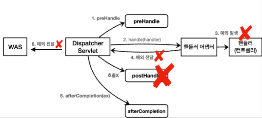 컨트롤러에서 예외가 터지면 "postHandle"은 호출되지 않는다. 그에 반해서 afterCompletion은 예외가 터지든 말든 항상 호출된다