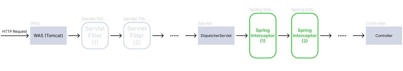 Spring Interceptor도 마찬가지로 "Chaining"해서 여러 인터셉터들을 엮을 수 있다