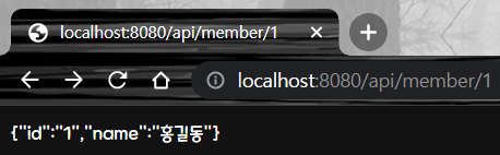- 위에서는 @RestController로 설정했기 때문에 JSON이 그대로 return되고, 만약에 @Controller로 설정했으면 View가 return될 것이다