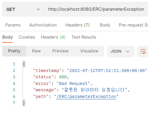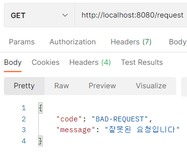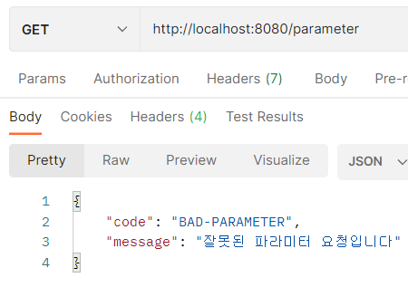 return new ErrorResult("BAD-PARAMETER", "잘못된 파라미터 요청입니다");