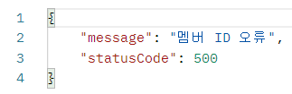 하지만 response로 보내진 API는 500에러로 처리된 것을 알 수 있다
