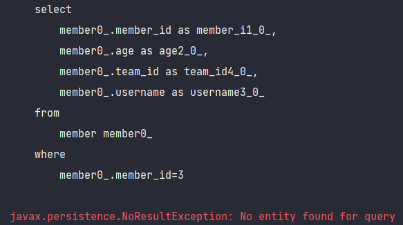 결과가 없는데도 불구하고 getSingleResult로 받으려고 하면 "NoResultException"이 터지게 된다