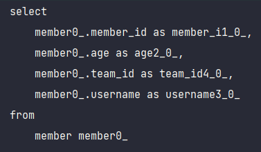 엔티티 프로젝션은 말그대로 원하는 엔티티(객체) 자체를 통째로 조회하는 것이다