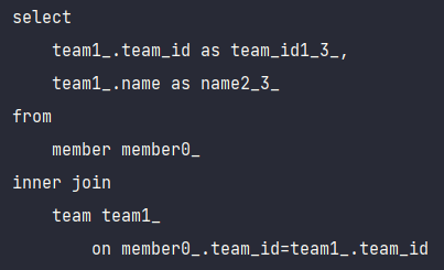 Member와 Team간에 @ManyToOne 관계를 맺었기 때문에 Member는 Team을 참조하고 있고 따라서 Member → Team으로 객체 그래프 조회를 할 수 있다