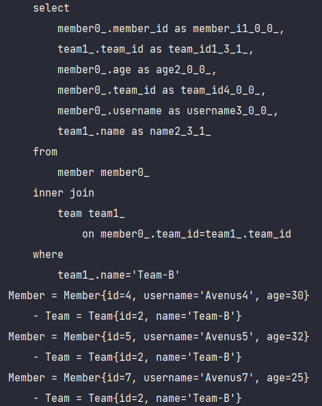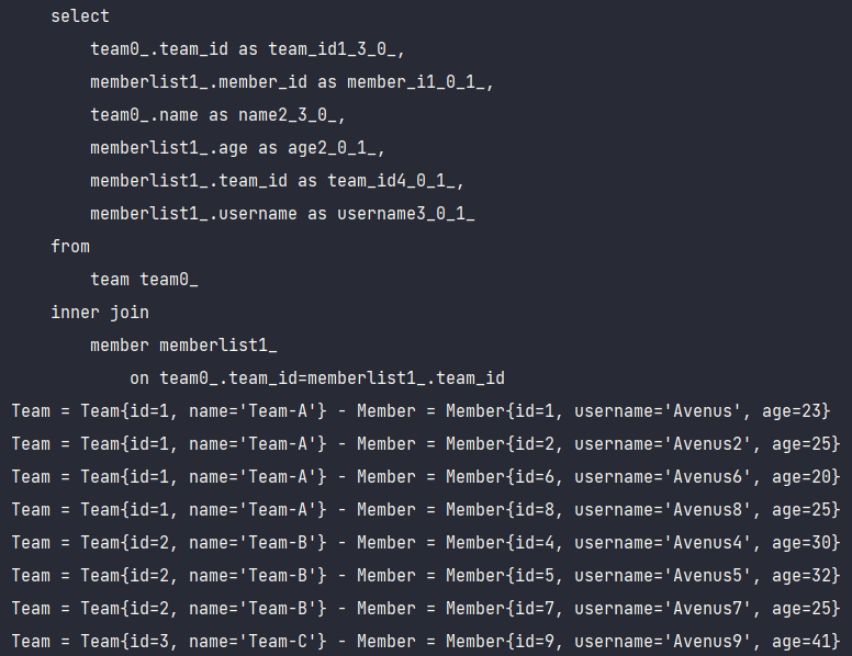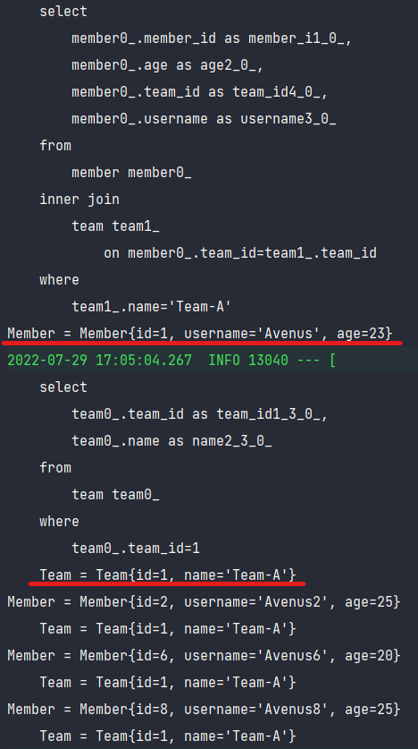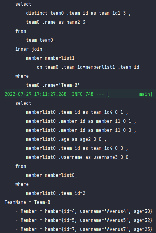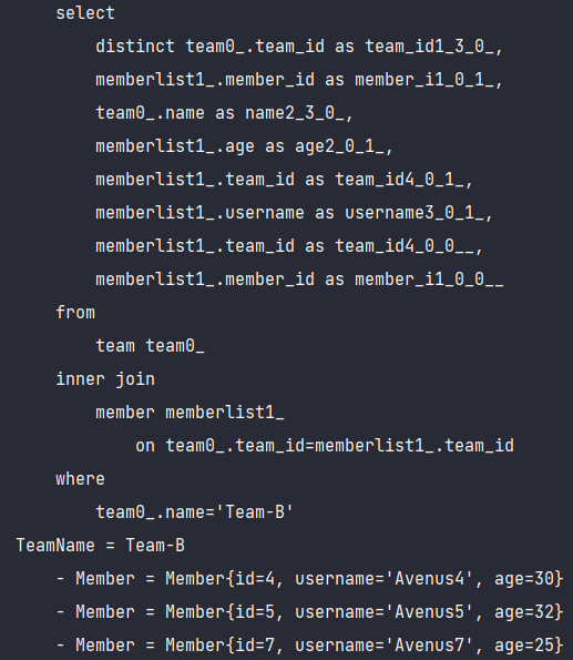 조회한 첫번째 Member인 Avenus의 Team을 조회하려고 하니까 Team에 대한 select query가 한번 더 나가게 된 것을 확인할 수 있다