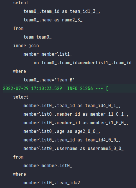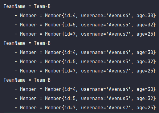 마찬가지로 Team에 대한 List<Member>를 조회할 때 추가적으로 select query가 1번 더 나가는 N + 1문제가 발생하게 되었다