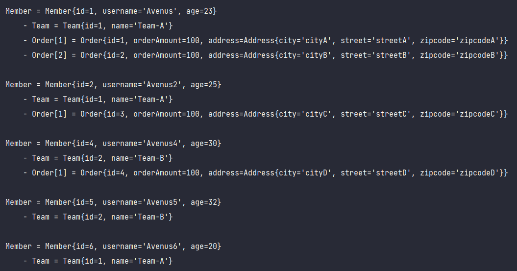 당연히 Member 데이터가 전부 당겨져 왔으니까 Team이 없는 Member는 Team이 null로 들어가게 된다