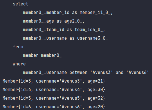 " WHERE m.username BETWEEN 'Avenus3' AND 'Avenus6'",