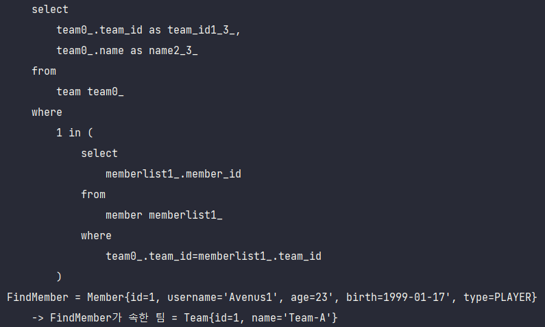 - PK값이 1인 멤버의 팀은 "Team-A = PK(1)"이다