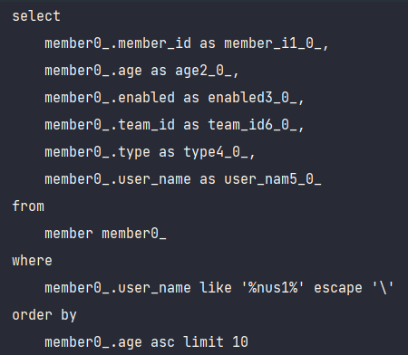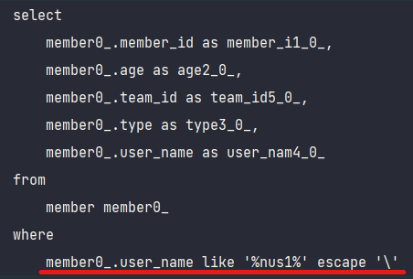query = "SELECT m FROM Member m where m.username LIKE :username"