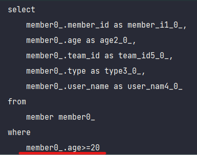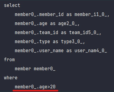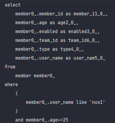 @Query("SELECT m FROM Member m WHERE m.username LIKE :username AND m.age >= :age")