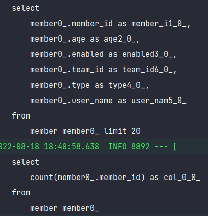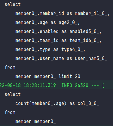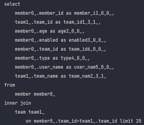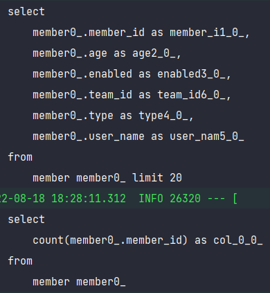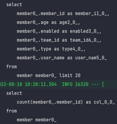 memberRepository.findByAnnotationPagingQueryCountProjectionCountName1(PageRequest.of(0, 20));