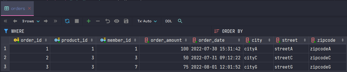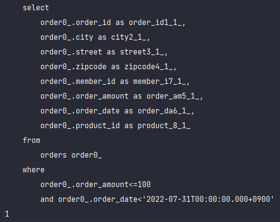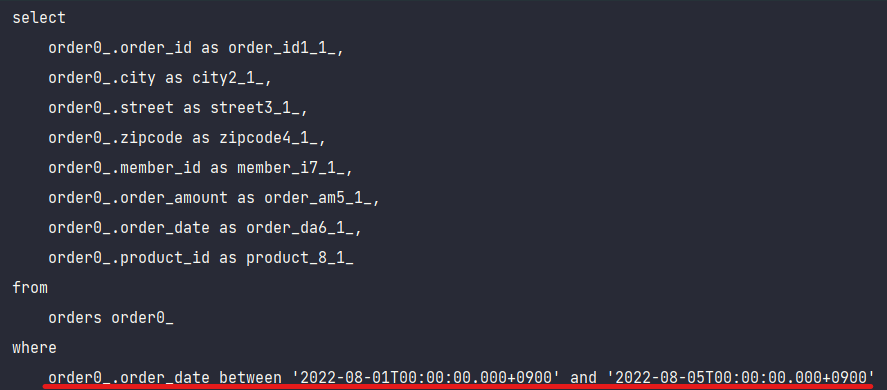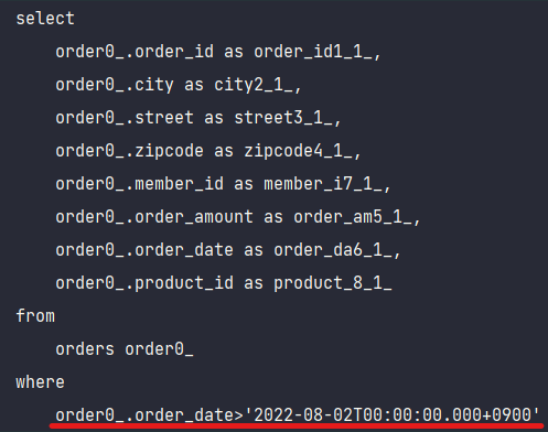 위와 같이 "임베디드 값 타입 내부의 필드"에 대한 검색 조건을 적용해주려면 [<임베디드 클래스><임베디드 필드>]로 연속적으로 적어주거나 [<임베디드 클래스>_<임베디드 필드>]로 적어줘야 메소드에 대한 JPQL이 정상적으로 생성된다