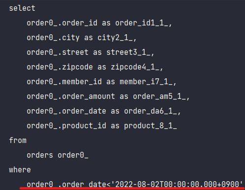 " WHERE o.orderDate >= '2022-07-31 00:00:00'")