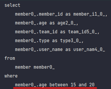 List<Member> byAgeBetween = memberRepository.findByAgeBetween(15, 20);