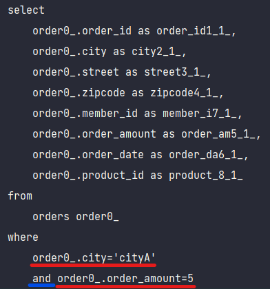 따라서 findByAddressCity 혹은 findByAddress_City로 종속적인 필드의 구조를 전부 적어줘야 정상적으로 쿼리가 생성된다