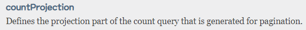 기본적으로 엔티티 자체를 countProjection으로 설정하게 되면 "엔티티의 PK"가 count query의 기준이 되어서 해당 쿼리가 날라가게 된다