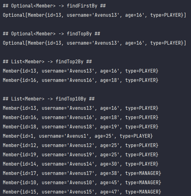 List<Member> byAgeLessThanEqual = memberRepository.findByAgeLessThanEqual(20);