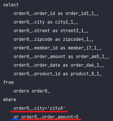 List<Order> or = orderRepository.findByAddressCityOrOrderAmount("cityA", 5);