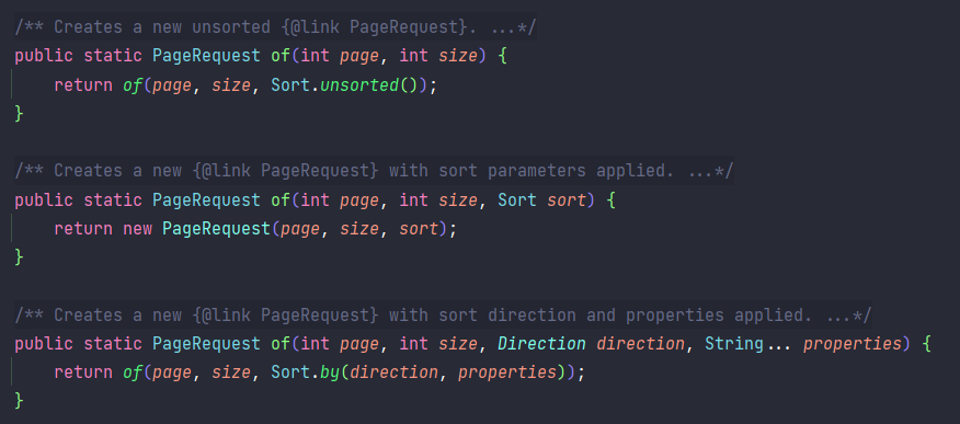 PageRequest는 of를 통해서 offset, limit, sort에 대한 정보를 설정할 수 있다.