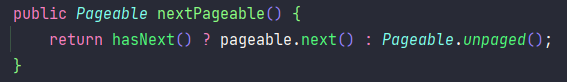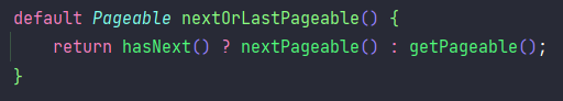 nextOrLastPageable()은 다음 Page가 있으면 해당 PageRequest를 return하고, 만약 다음 Page가 없다면 현재 PageRequest를 return한다
