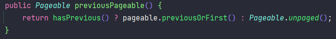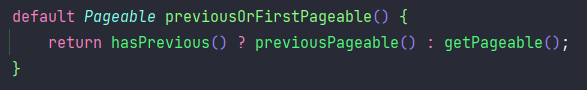 previousOrFirstPageable()은 이전 Page가 있으면 해당 PageReqeust를 return하고, 만약 이전 Page가 없다면 현재 PageRequest를 return한다